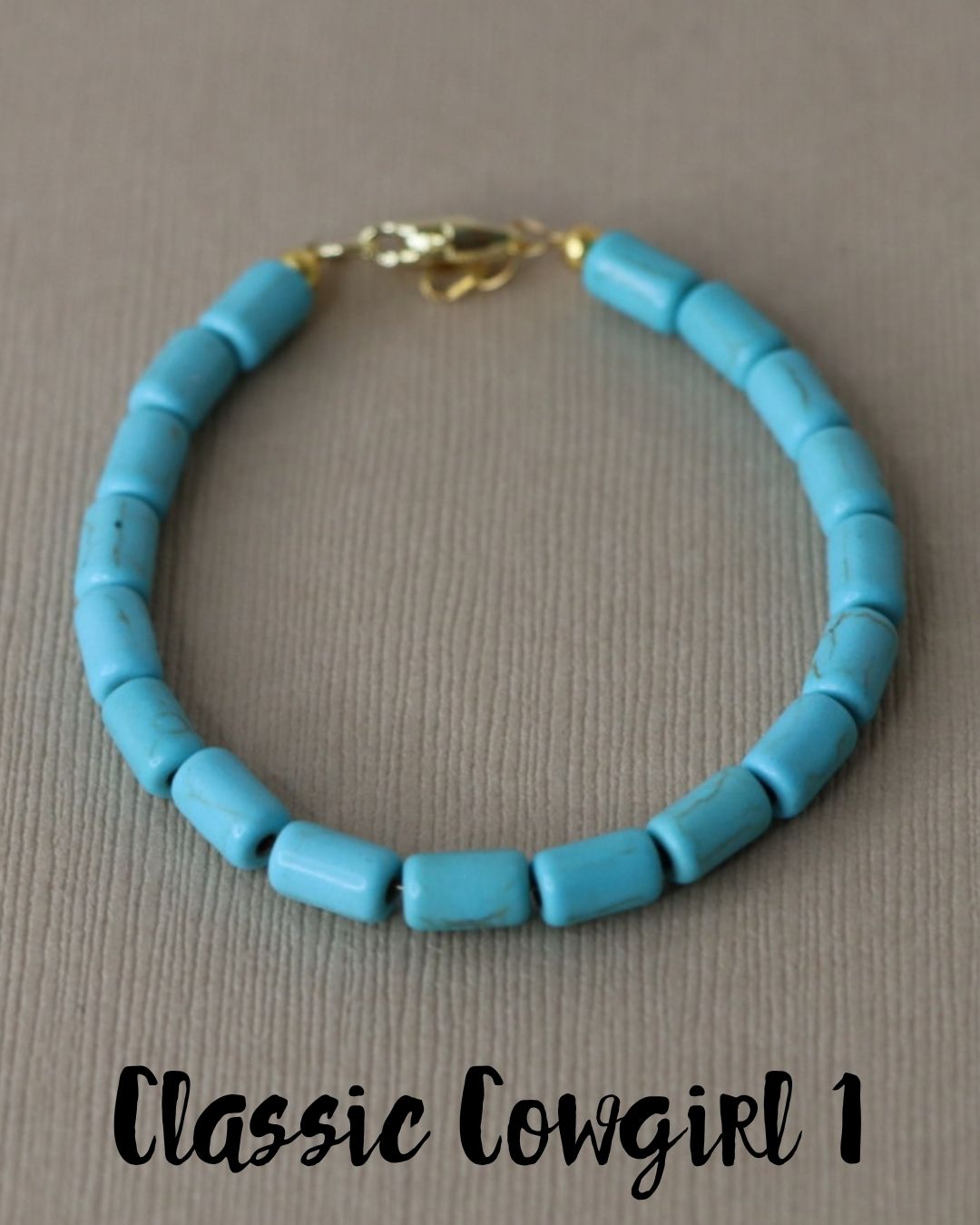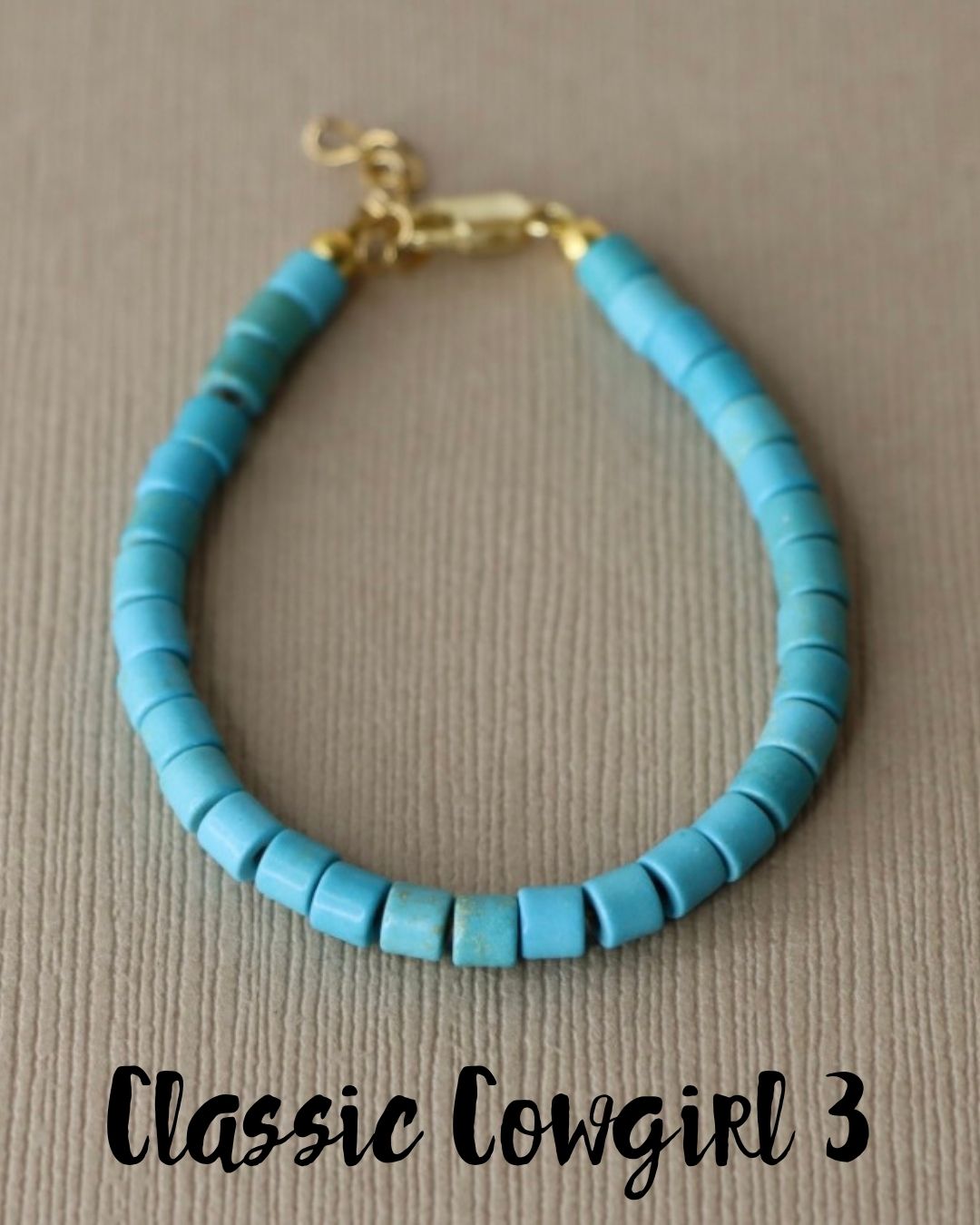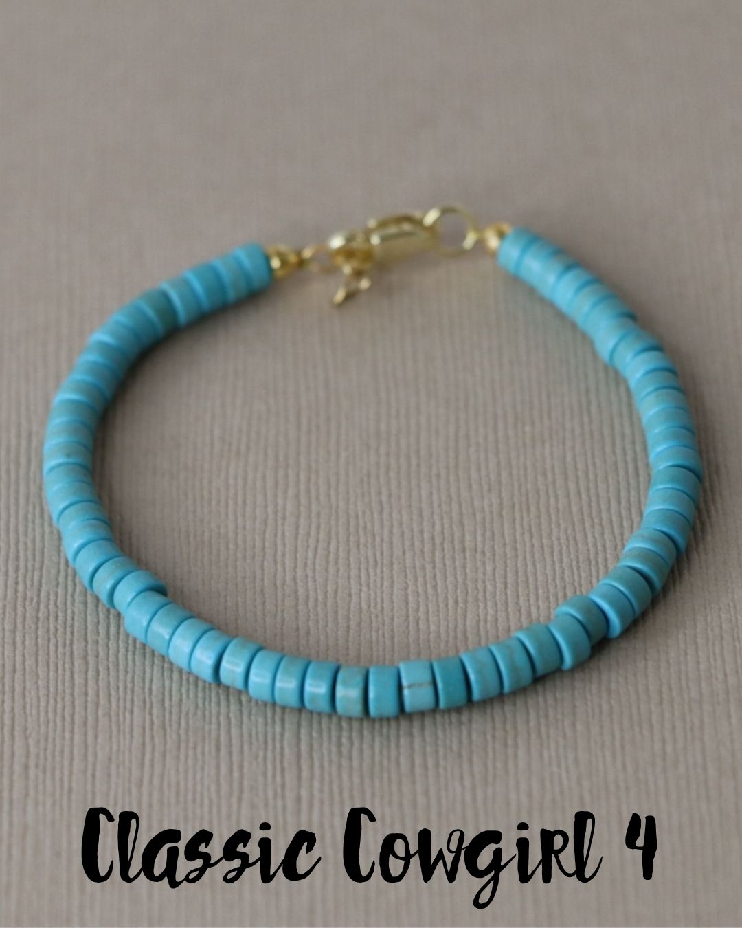 Introducing The Classic Cowgirl – 4 turquoise bead bracelets designed for the wild-at-heart.